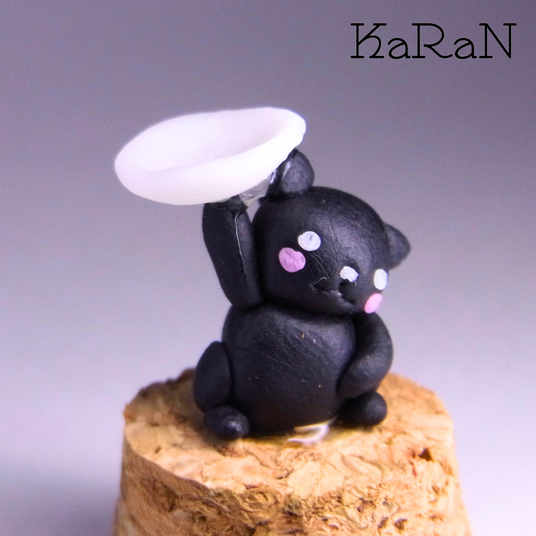 Z137 黒ネコ どうぶつこうぶつ小瓶 (石置き台座)