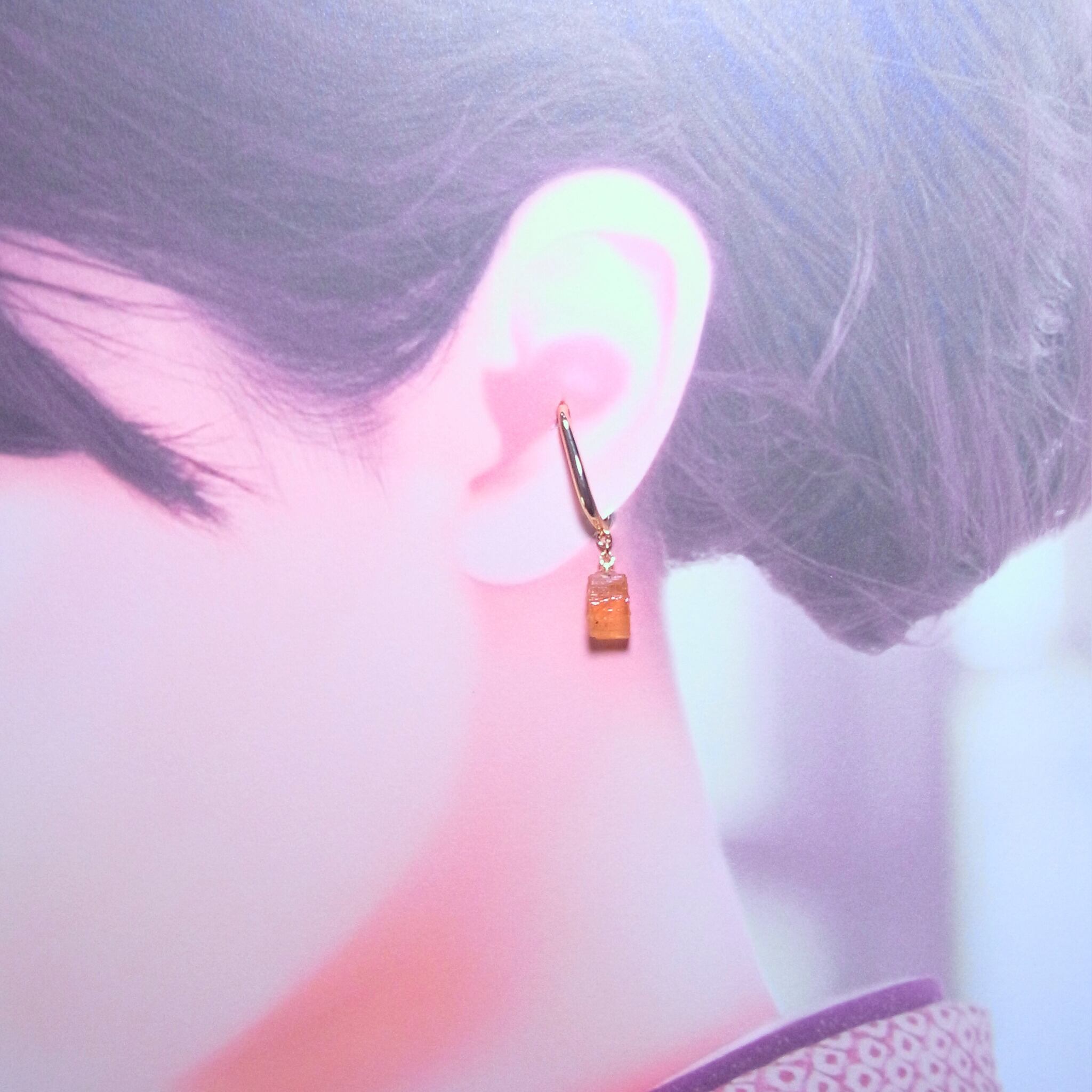 結晶の形が綺麗に残っているインペリアルトパーズの原石をイヤーカフにしました。